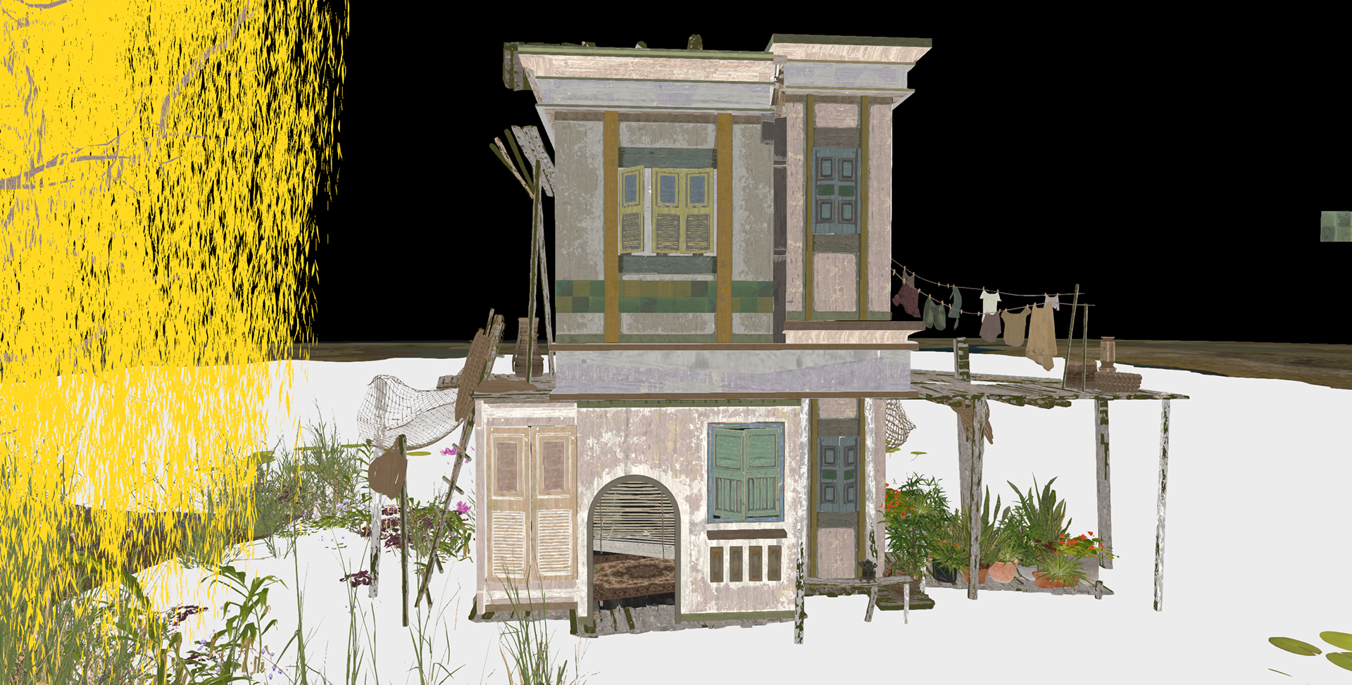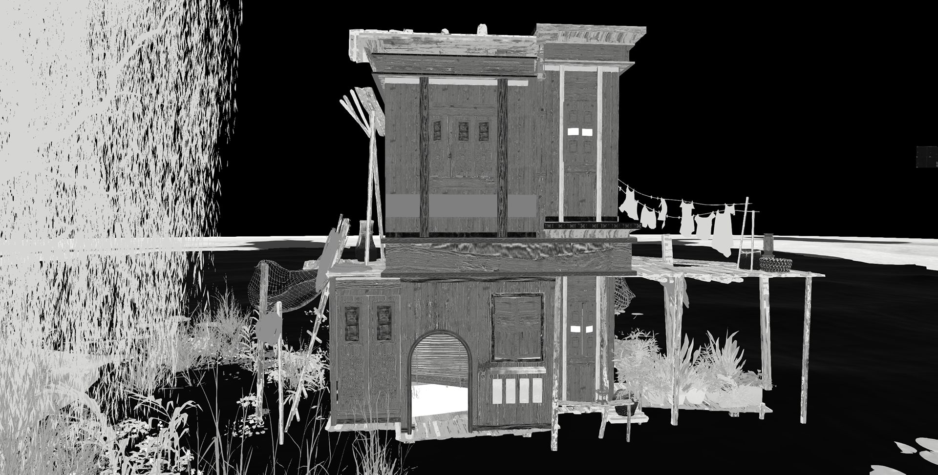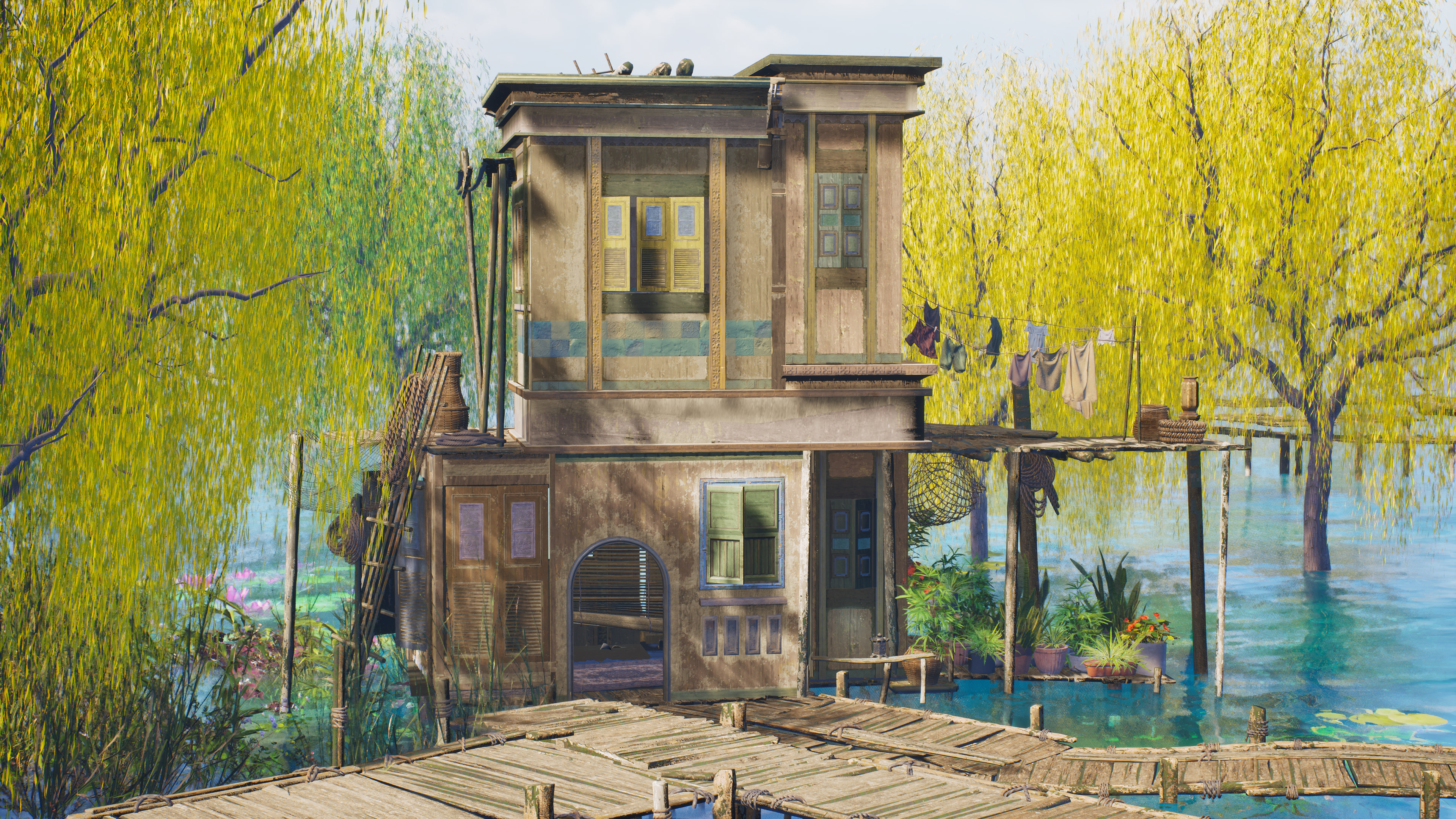building assets, swamp landscape, and lighting (HDRI) are on different levels (always streaming )for management