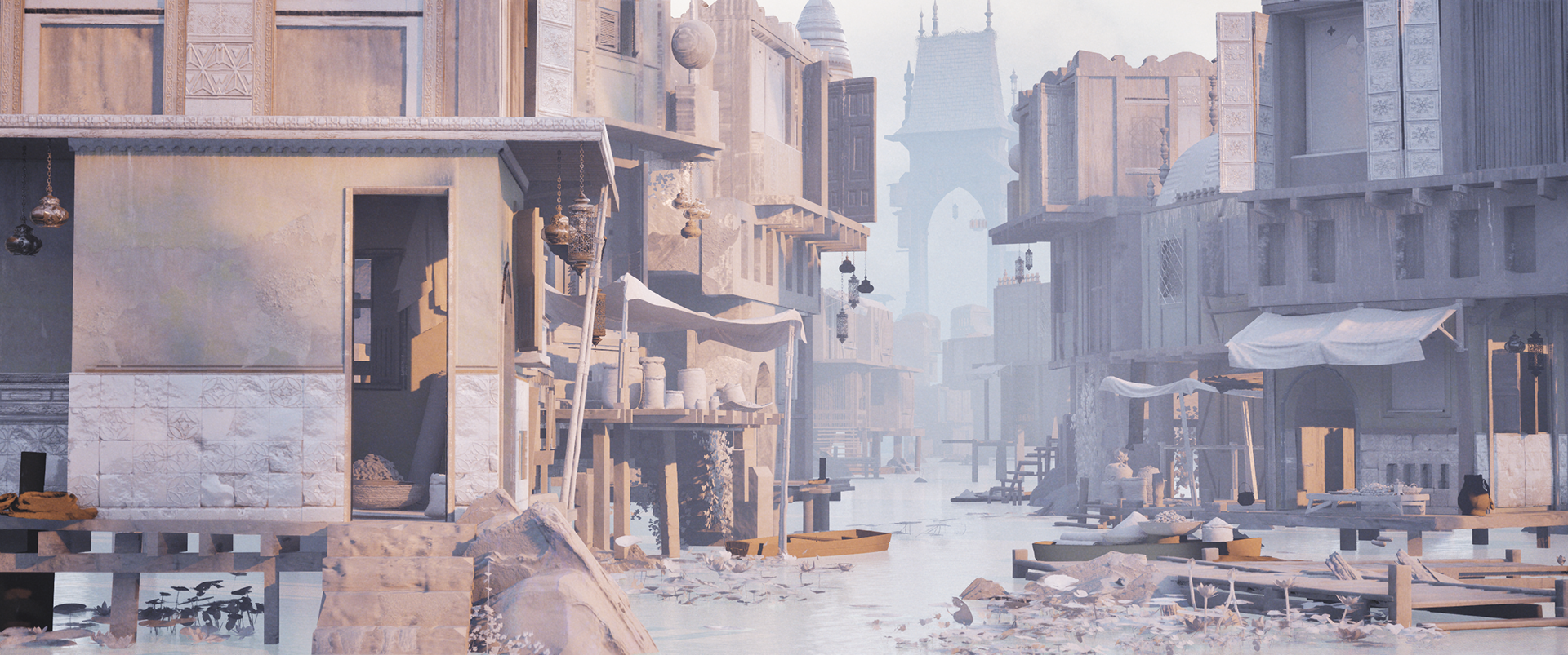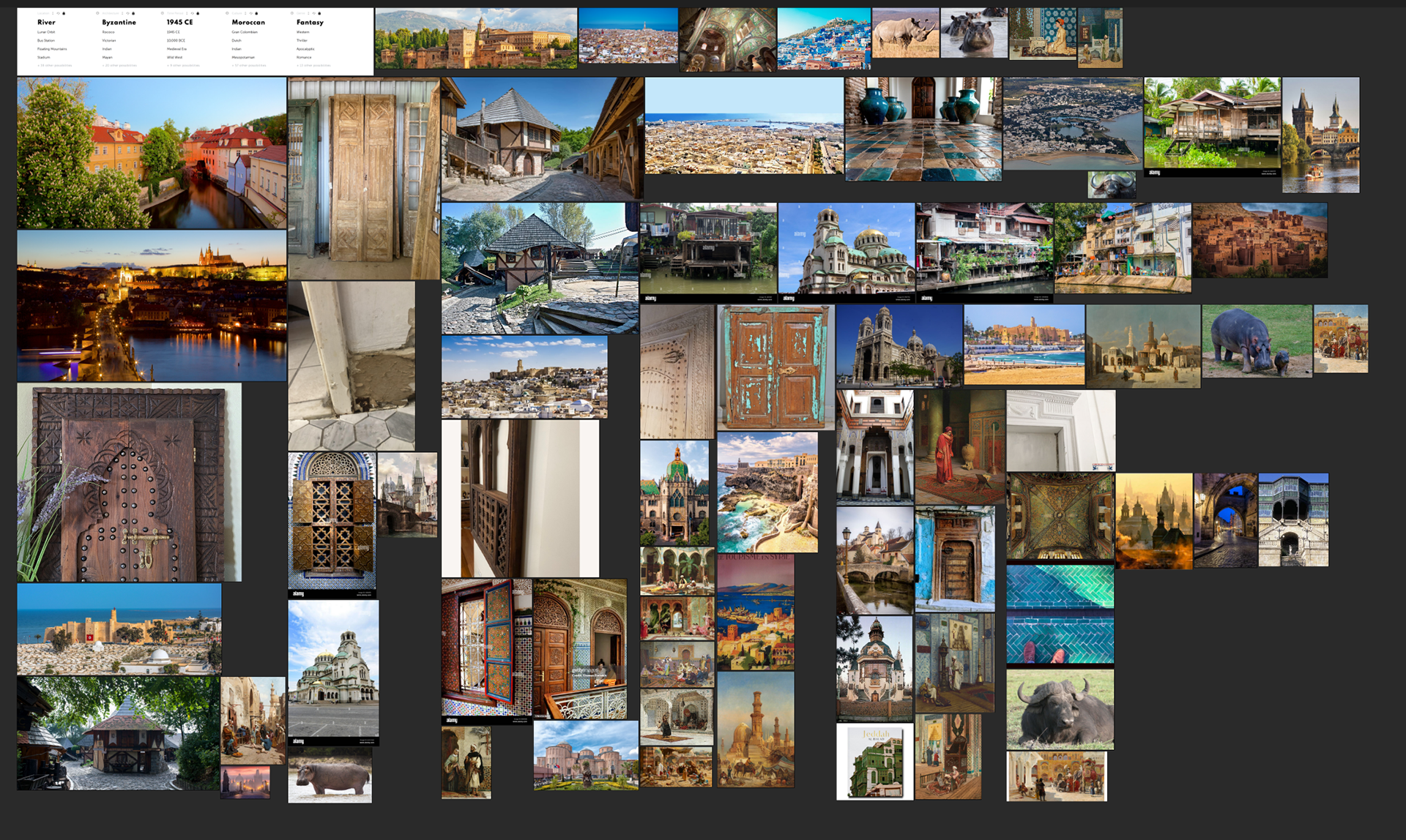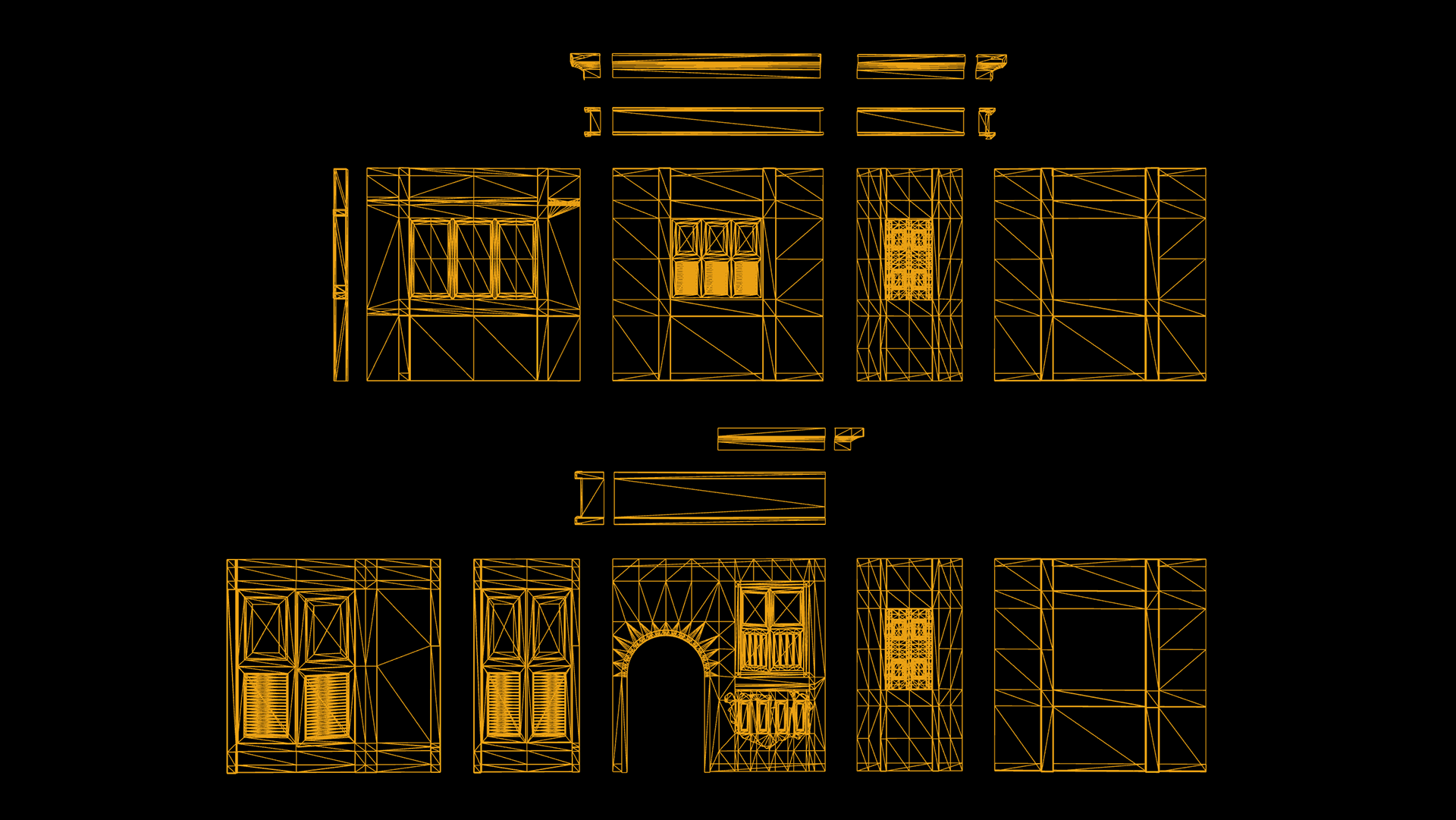 After research and sketching, I created a modular kit for this swamp village project. Highlighting designs on decorative trims and overhanging molding (Islamic), as well as creating a more dynamic modular kit for different building and stacking purposes. All of this is to follow my first draft of design (scroll down to see more)