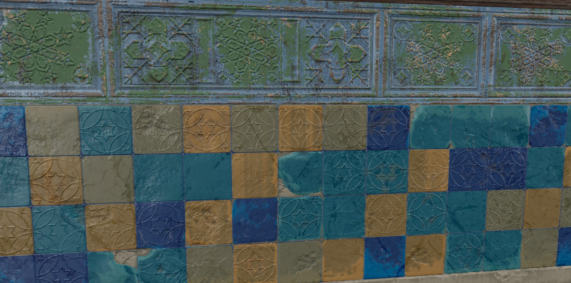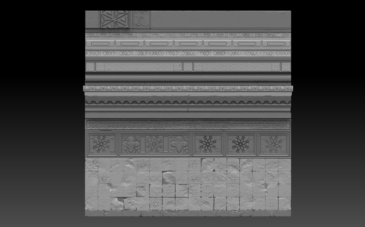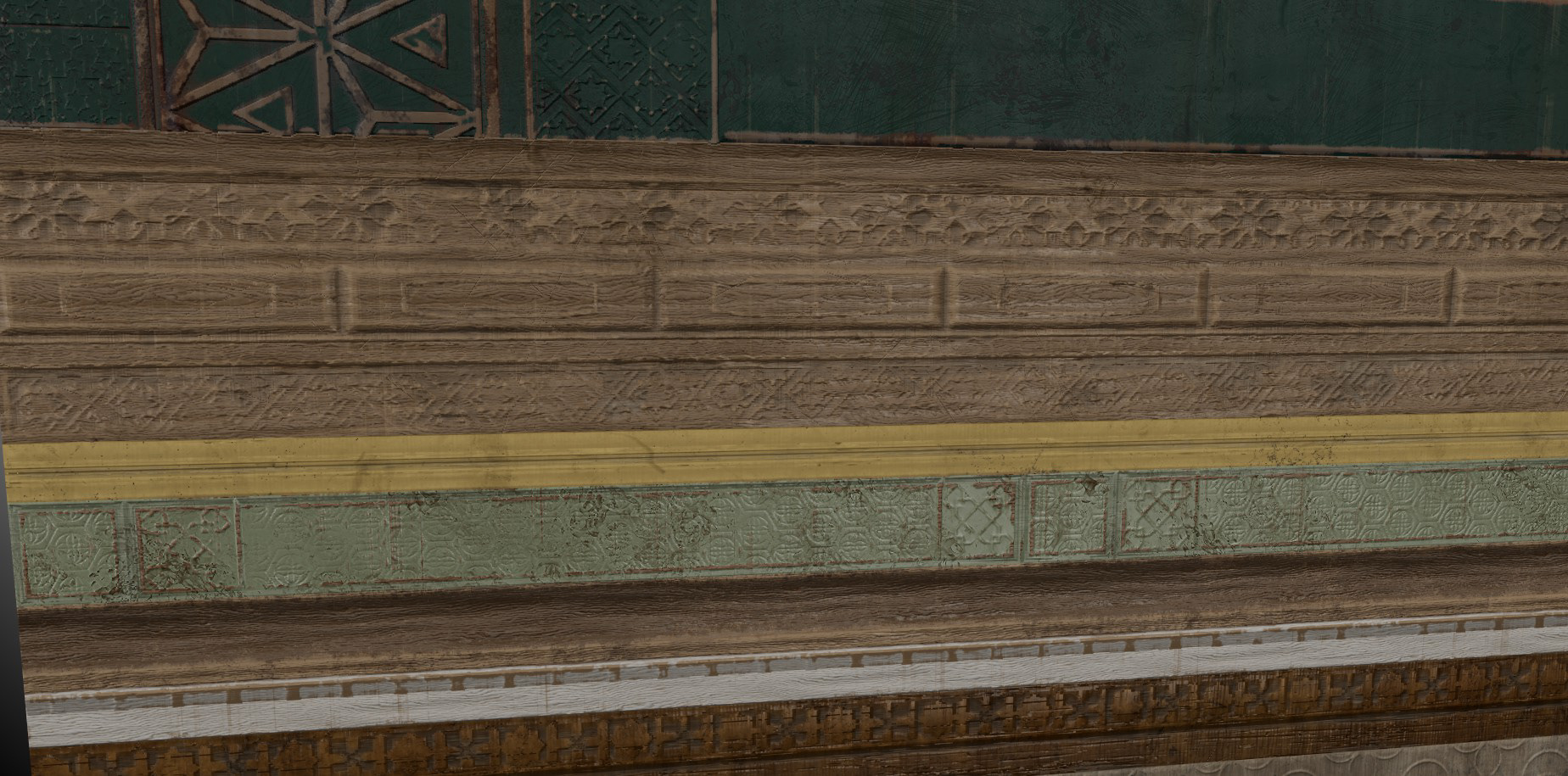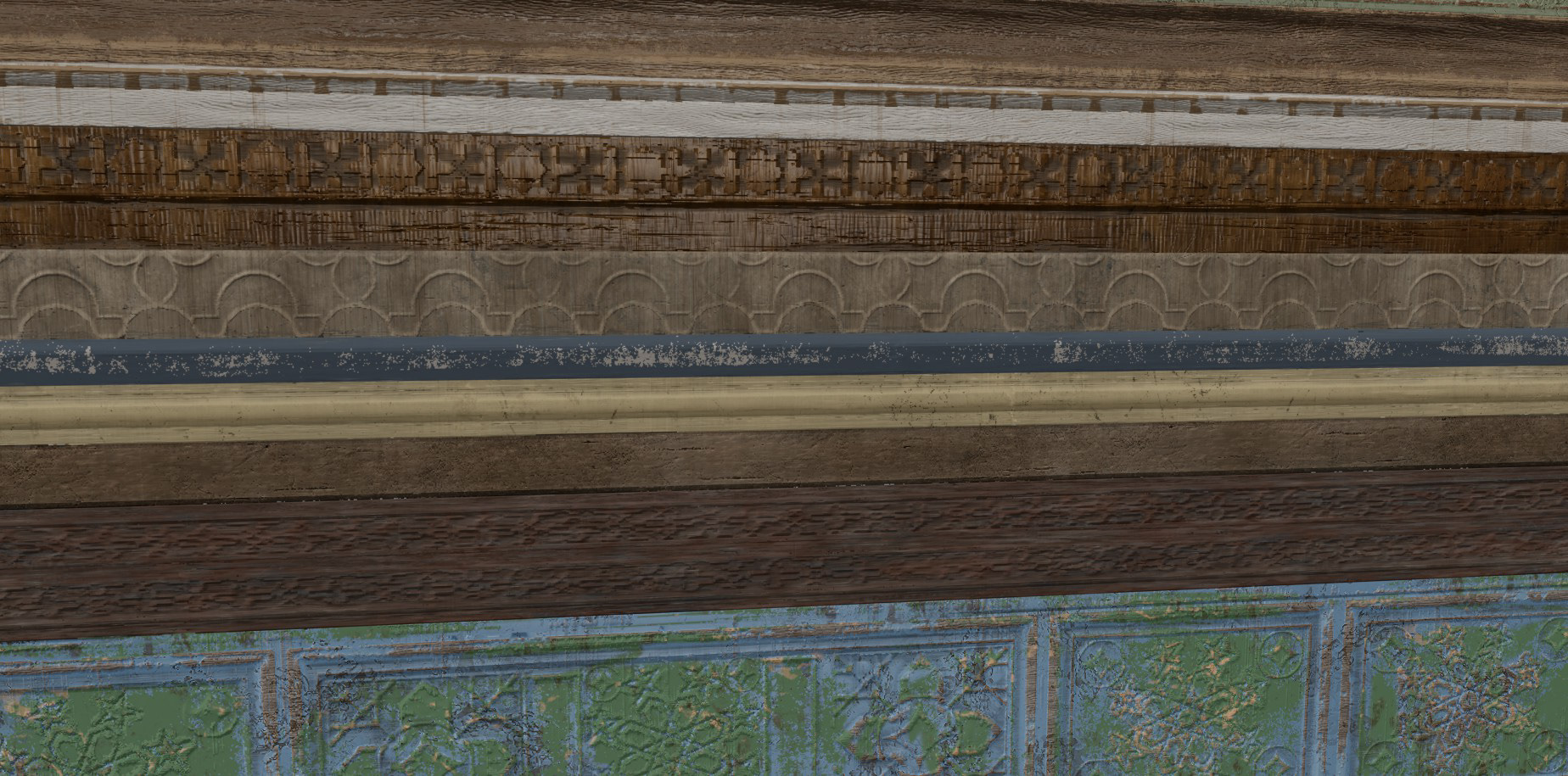 Trimsheet was created in zbrush and later in Substance Painter. It covers materials range from painted wood, bare wood, stained wood, tiles, and plaster.